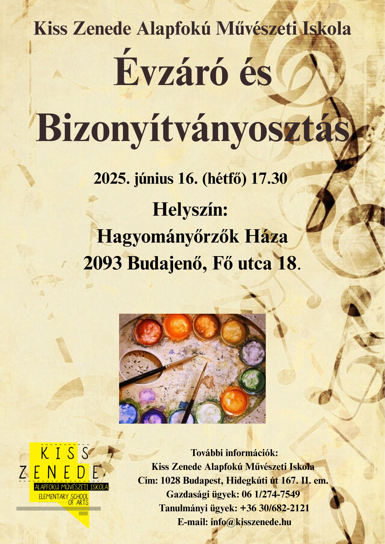 Sok szeretettel várjuk Növendékeinket, Hozzátartozóikat és Mindenkit 2025. június 16-án 17.30-kor kezdődő évzárónkra Budajenőre, a Hagyományok Házába!